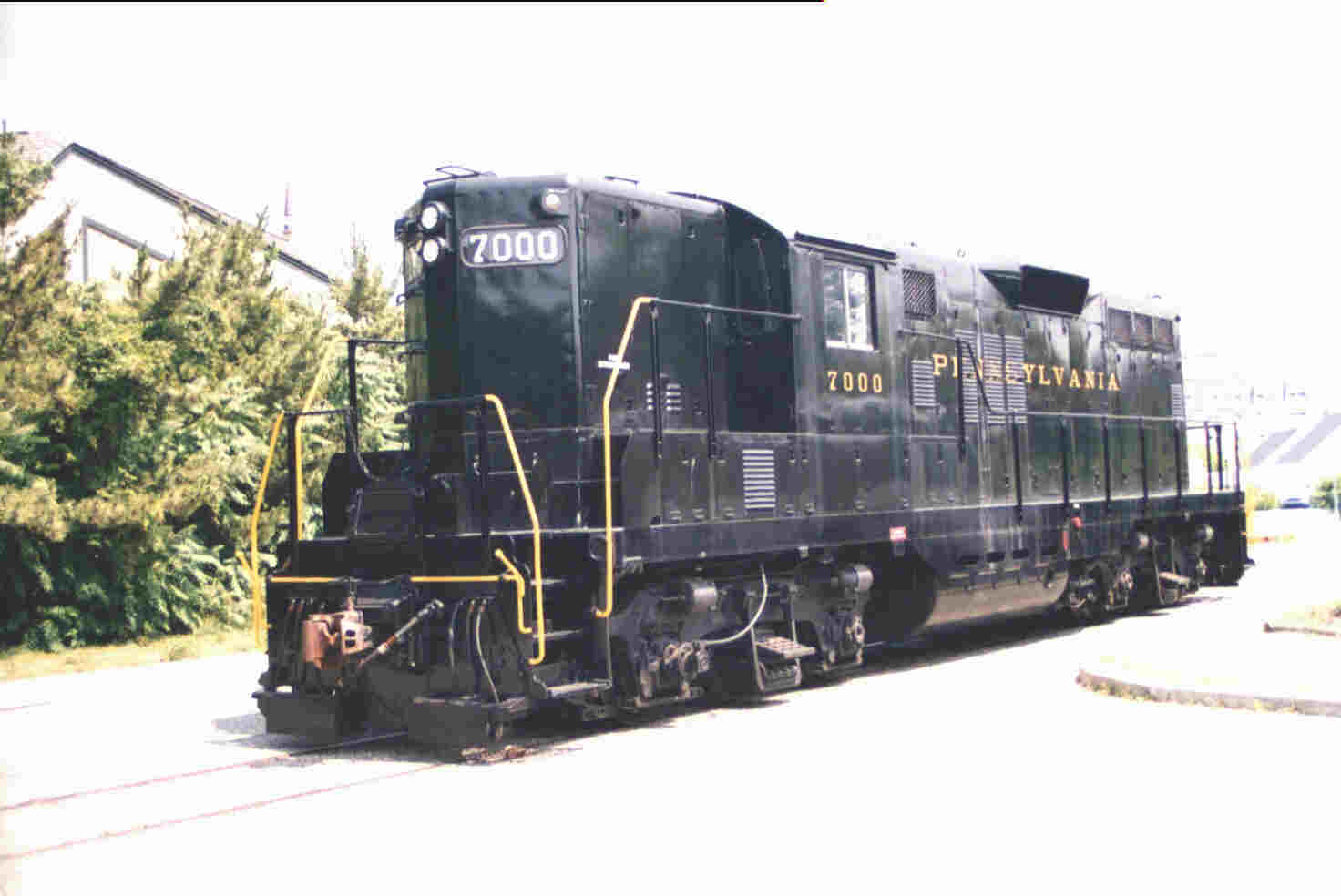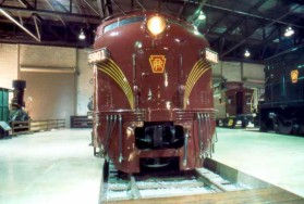 ![]() EMD E-7A locomotive at the Railroad Museum of Pennsylvania, in Strasburg, PA. This museum focuses on railroad equipment used or built in Pennsylvania. Baldwin Locomotive Works (Philadelphia) and General Electric (Erie) were two of the large locomotive builders located in the state. This locomotive, although not built in Pennsylvania, was used by the Pennsylvania Railroad, the largest railroad company in the state. |