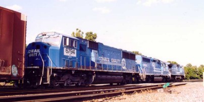 ![]() Three locomotives, still in Conrail blue paint, at Abrams yard, in King of Prussia, Pennsylvania. August, 2002. |